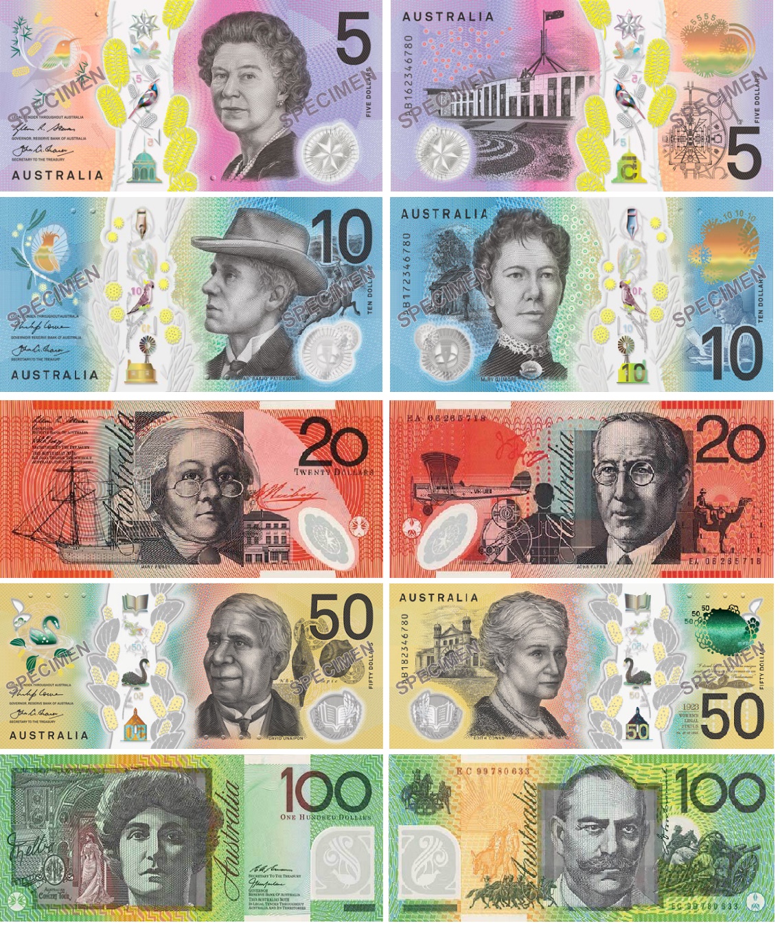 - След съвместното разработване на нови технологии за печат на банкноти в Австралия от Резервната банка, страната издава банкнотата от 10 долара в полимер, през януари 1988 г., за да отпразнува двестагодишнината на Австралия.
