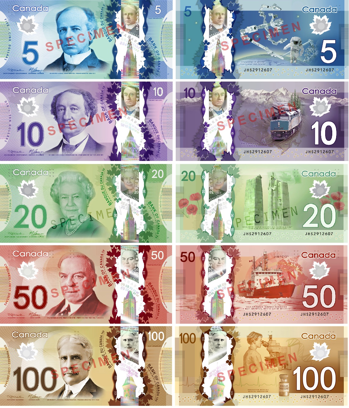 - Серията - наречена „Frontier Series“ е седмата в Канада и е направена изцяло от полимер с допълнителни защитни функции, приложени към валутата.