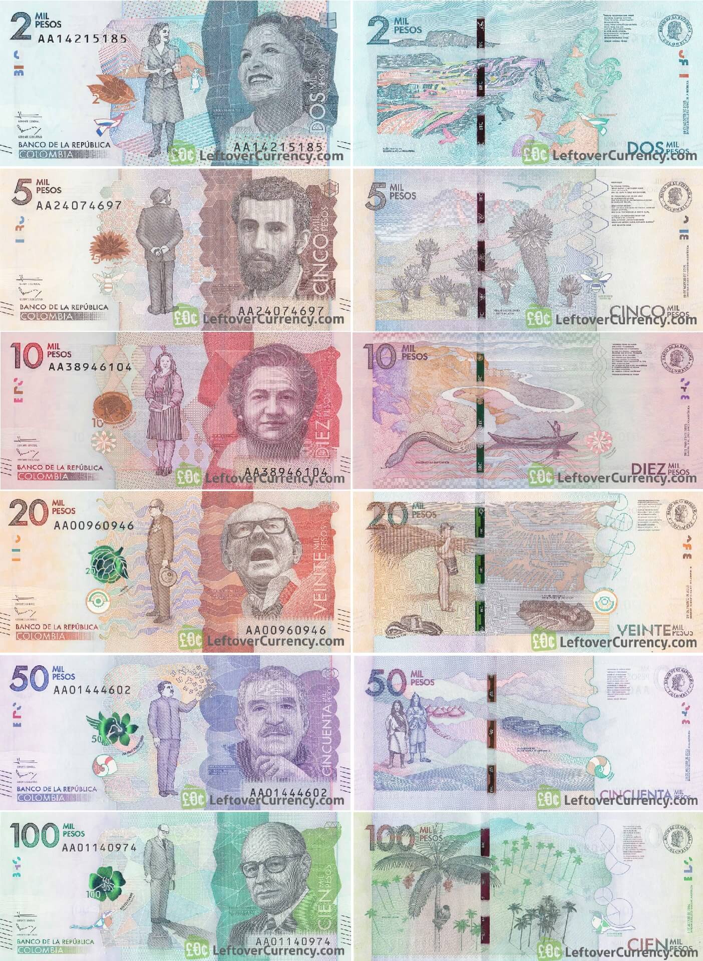 За друг вид визи могат да бъдат изискани и други документи. Те ще трябва да бъдат преведени на испански език, а някои от тях ще трябва да бъдат легализирани от консулството. ИСТОРИЯ НА ПАРИТЕ Първите хартиени пари, издадени в Колумбия, са въведени между 1857 и 1880 г. в купюри от 10, 50, 10, 5, 3, 2 и 1 песо и 10 и 50 centavos. Оттогава колумбийската валута претърпя много промени. Една промяна е въвеждането на други деноминации, като песото 200, 500, 2000 и 1000. Въведени са и повече функции за сигурност, като числото „2“, написано на Брайля, на 2000 песо. Миналата година Централната банка на Колумбия представи нова серия банкноти, а именно 100 000, 50 000, 20 000, 10 000, 5 000 и 2000 песо. Тези нови бележки подчертават различни аспекти на колумбийското културно наследство, наука и политика.