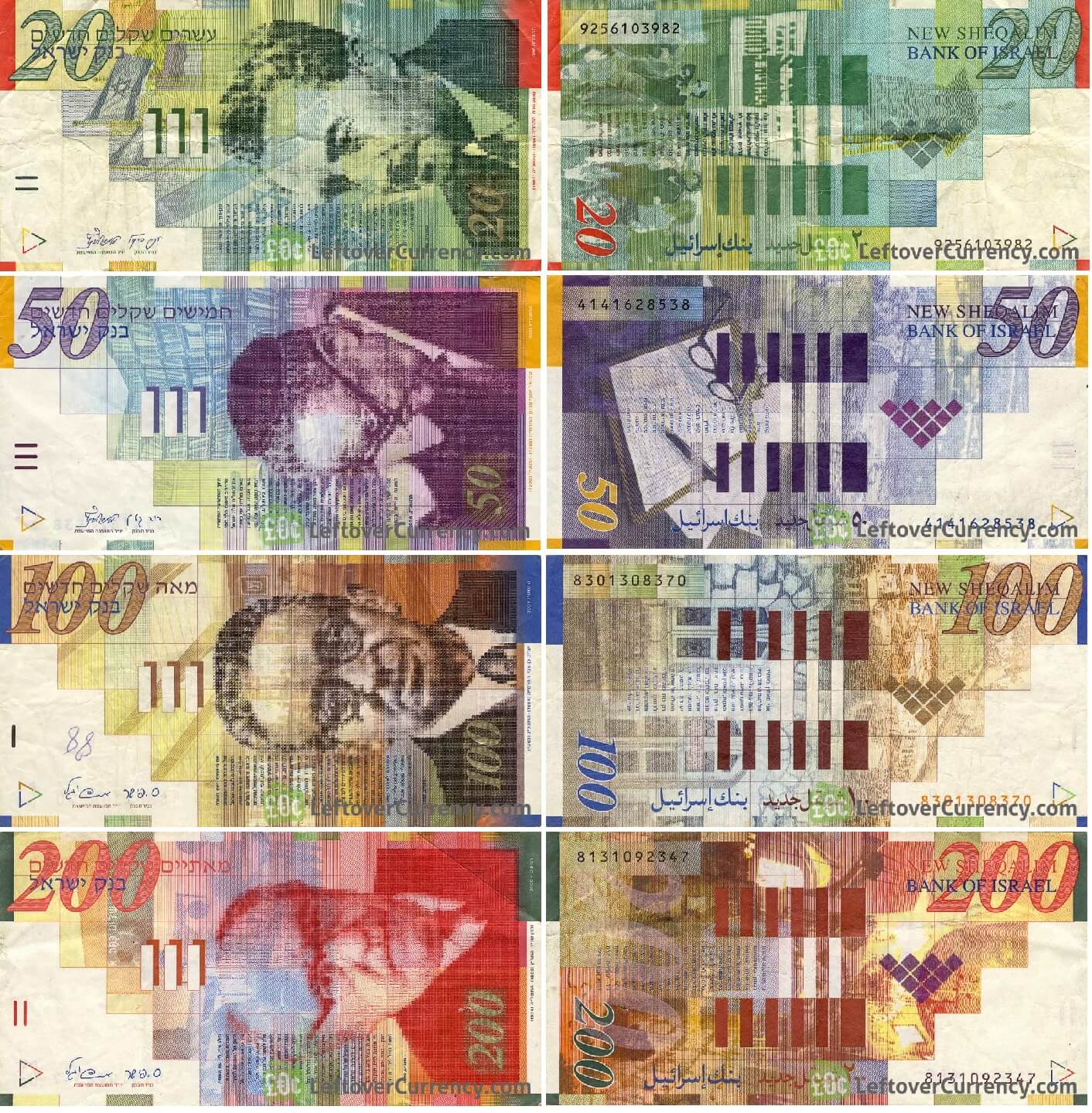Валутата на държавата Израел е израелският шекел. Тя обаче е и средство за плащане в палестинските територии, докато в Ивицата Газа тя “ходи” на равна нога с египетската лира .Един сикъл е разделен на 100 агора. Съгласно правилата на еврейския език, множествено число от тази дума се формира чрез завършване на “-о”. Тоест, 1 агора, 5 агора и 10 агора. Руснаците са свикнали с това обозначение бързо, тъй като на руски език се използва и този принцип за формиране на множествено число: “1 банкнота – 10 банкноти, 1 агора – 10 агора”.е една от най-младите в света. Но за кратката си история вече има две основни парични реформи. От август 1948 до февруари 1980 г. Израел използва валутата “израелска лира”. От 24 февруари 1980 г. се въвежда “израелският сикъл”, който сега се нарича “старият израелски сикъл”.В началото на 80-те години в Израел избухна ужасна икономическа криза. Инфлацията на официалните данни достигна 450% годишно, а според неофициални 1000%. Израелската валута беше силно обезценена, страната беше пълна с милионери. В снимката отляво на деноминацията от 10 000 сикли от 1984 проба.Кризата бе решена чрез прилагането на “Плана за стабилизиране от 1985 г.” и валутата бе решена да бъде деноминирана, като към заглавието беше добавена думата “нова”.Сега националната валута на Израел непрекъснато се укрепва спрямо еврото и долара. Скоростта е много бавна – 20% през цялата 2000-та година. От 1 януари 2003 г. сикълът е свободно конвертируема валута, търгувана на международни борсиИзраелската национална валута е новият израелски шекел, по-известен като „шекел“, като се съкращава ILS, или по-често NIS. Израел няма монетен двор, за да произвежда своите банкноти, затова валутата се отпечатва в Швейцария. Старият шекел претърпява силна и неконтролирана инфлация, настъпила по време на икономическата криза в Израел в началото на 80-те години.От 1 януари 2003 г. новият шекел е гъвкава и напълно конвертируема валута и се търгува по валутни фючърсни договори на валутния пазар.на банкнотите е украсена на преден план с важна фигура в историята на Израел, като илюстрацията е съставена от малки ивритски букви, а на заден план - с изображение на събитие, с което е свързано. Шекел и Нова Агора са обявени за законно платежно средство на 22 февруари 1980 г. и влизат в обращение два дни по-късно. Първоначалните деноминации са IS 1, 5, 10 и 50, но през следващите пет години инфлацията довежда до още пет: IS 100, 500, 1000, 5000 и 10 000. Дизайните на нови банкноти са избрани чрез състезание сред графични дизайнери.Започвайки с изданието на 500 шекела, размерът на банкнотите е стандартизиран (76 mm × 138 mm). Купюритe са вертикални и номиналите са диференцирани по цвят и дизайн.Банкнотите в Третата серия носят портрети на изключителни еврейски поети, чиито житейски истории, творби и дейности са преплетени с историята за прераждането на нацията на Израел в нейната земя. Купюрите от серията включват функции за сигурност в три категории, въз основа на начина, по който хората могат да ги проверят - чрез разглеждане, докосване или накланяне на банкнотата. В допълнение към тези характеристики, банкнотите съдържат дълбоки знаци, за да улеснят използването им от хора с увредено зрение. Елементите за сигурност на хартиените банкноти, включени в шекела са: прозрачен портрет, идентичен с портрета показан на лицевата страна на банкнота