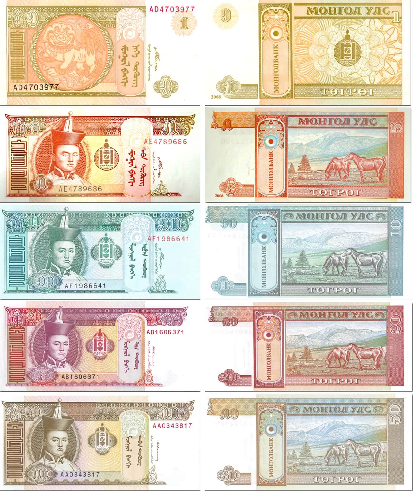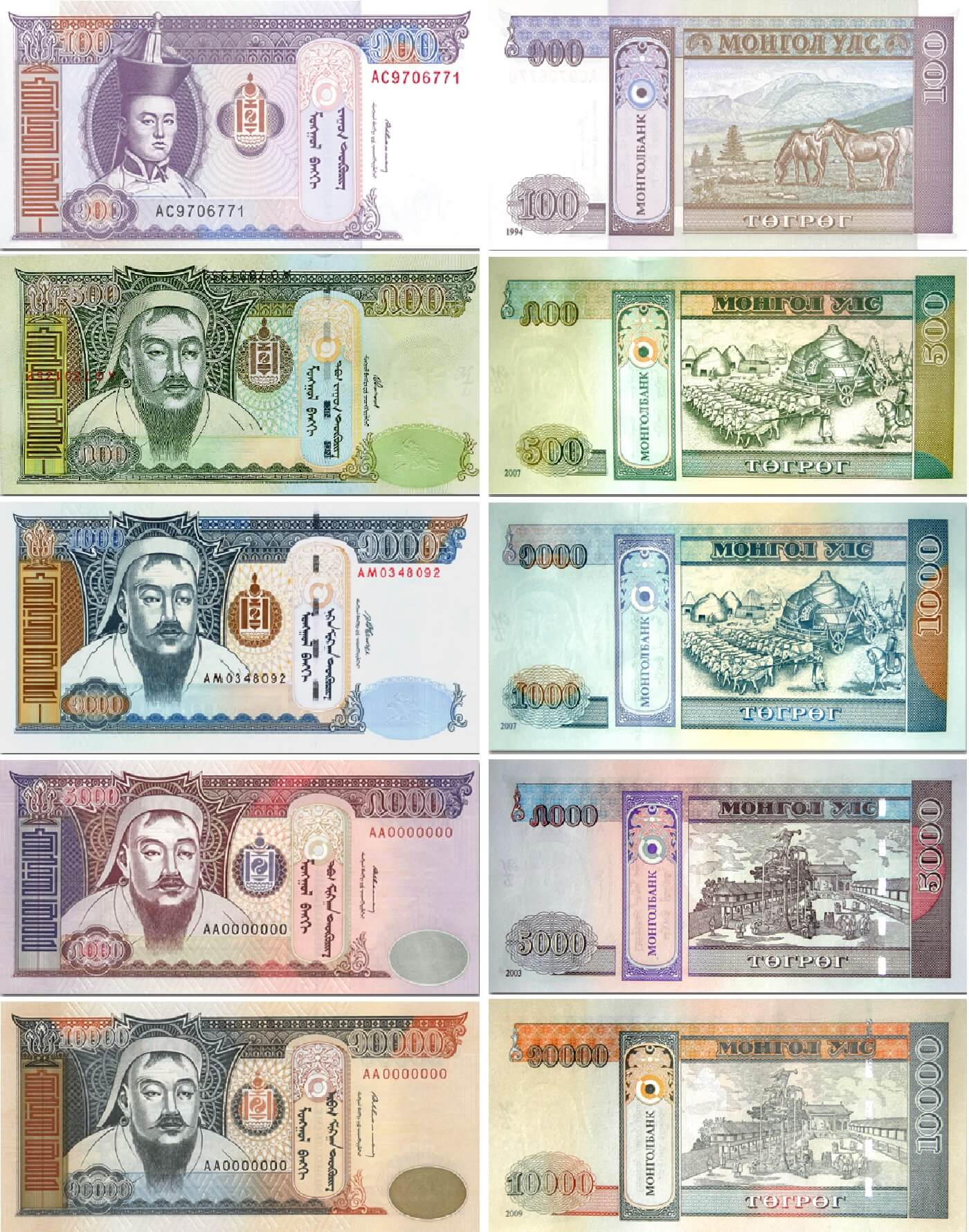 Банкнотите с номинал от 10, 20, 50 мунгу към днешно време са иззети от обращение. Използват се единствено банкноти с номинал от 1 до 20 000 тугрика.