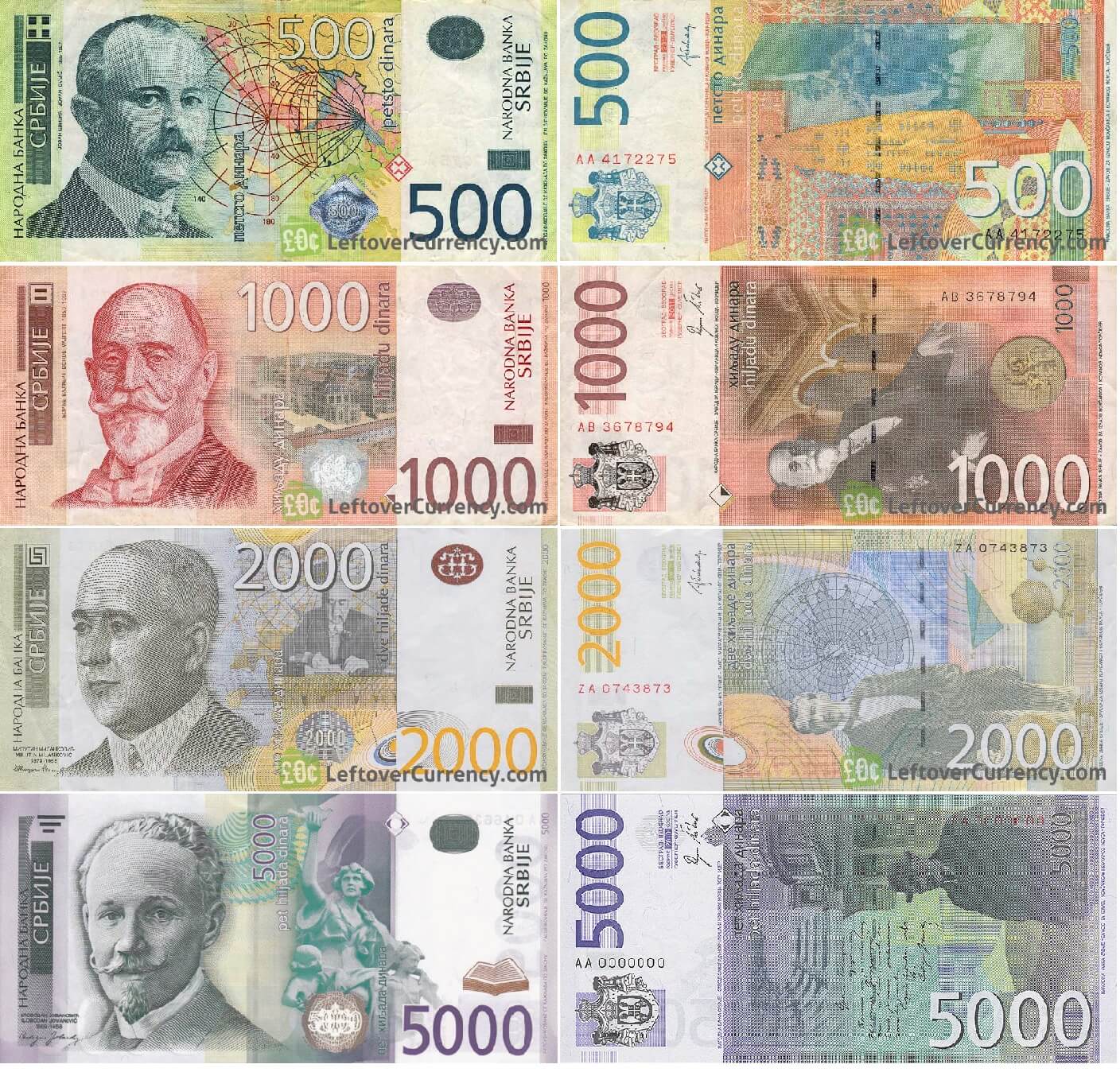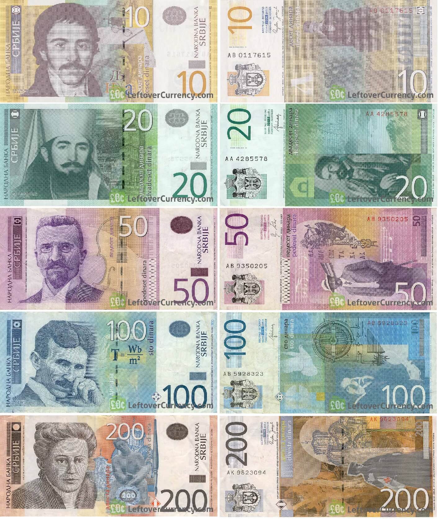 Върху настоящите банкноти са показани портрети на хора, свързани с историята на Сърбия и Народната банка на Сърбия, а върху монетите са показани сръбски манастири.