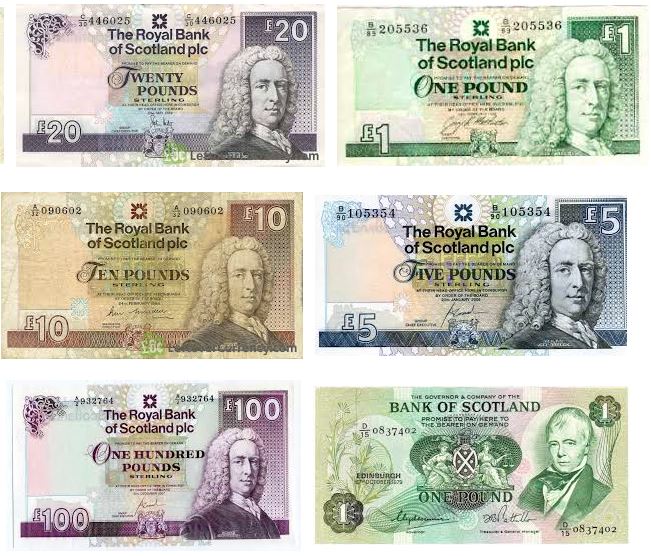 Правото да емитират паундове в Шотландия имат три търговски банки – Банк ъф Скотланд, Роял Банк ъф Скотланд (РБС) и Клайдсдейл. Това води до невероятно разнообразие от банкноти и е причината да разделя постинга по темата на цели три (3) части. Започвам с РБС не защото са на-кралски, а защото имат само една серия с класически дизайн, а лентичката на скролбара вече започва да се смалява застрашително.