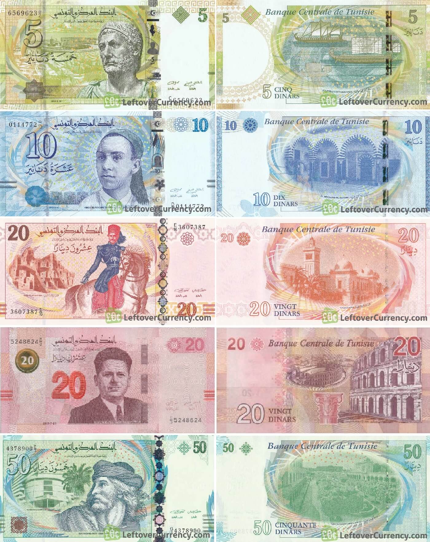 Незаконен е вноса и износа на динари и те не се приемат в безмитните магазини в летището на Тунис. Можете да обмените до 30% от парите, които носите, в динари, което е до 100 динара. Трябва да имате банкова разписка, за да докажете, че сте обменили пари. При напускане на Тунис чужденците, посетили страната с цел туризъм или краткосрочно посещение, имат право да изнесат в брой валута в размер до 1000 тунизийски динари. Всяка сума, надвишаваща определената, трябва да бъде декларирана още при влизането в страната