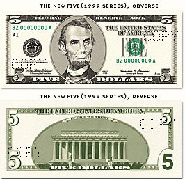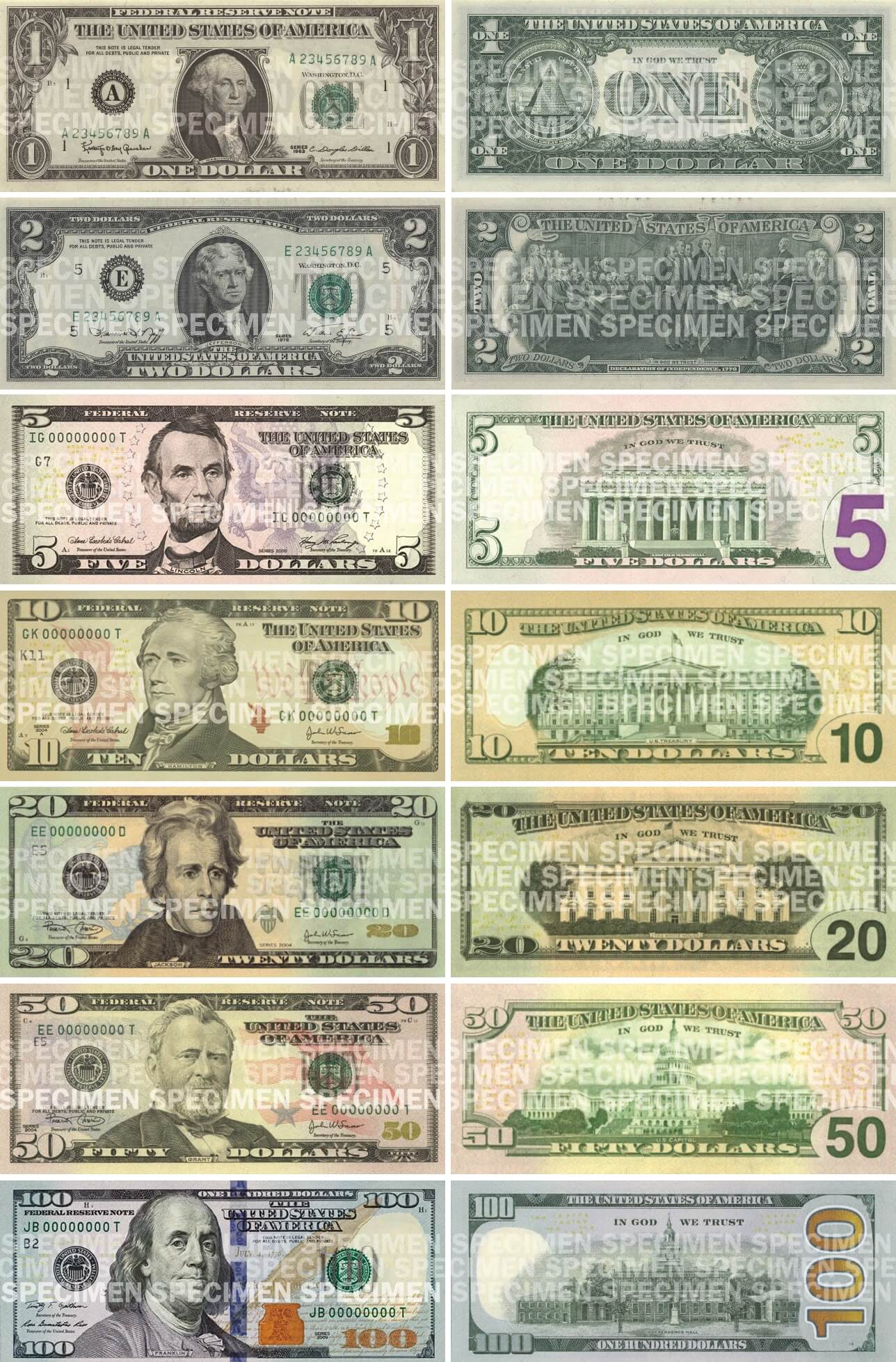 - Всяка банкнота включва характеристики за сигурност и дизайн, уникални за това как се използва наименованието в обращение. Правителството на САЩ периодично прекроява банкнотите на Федералния резерв, за да ги направи по-лесни за използване, но по-трудни за фалшифициране. Политиката на правителството на САЩ е, че всички дизайни на американска валута остават законно платежно средство, независимо кога са издадени.
