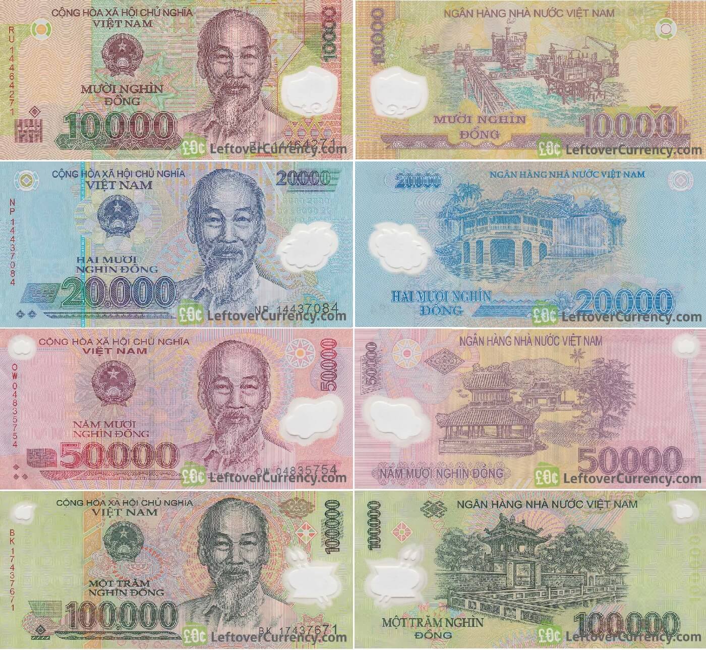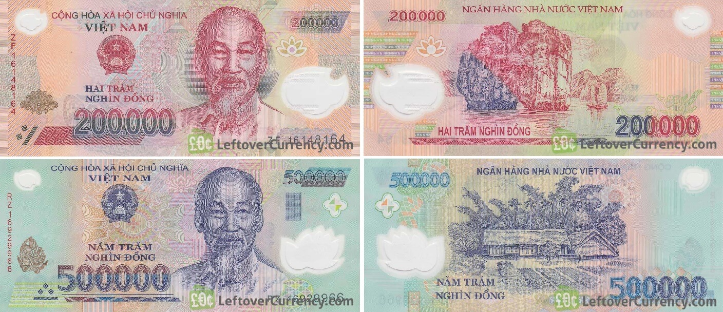 Най-разпространени са купюрите над 10000, тъй като по-малките са с много ниска покупателна способност. Затова много вероятно е при желание да си набавите от виетнамските донги да успеете да намерите главно банкноти по 100000, 200000 и 500000 .Виетнам е най-големият износител на кашу и черен пипер в света и вторият по големина износител на ориз.Въпреки че е развиваща се страна, тя има степен на грамотност 94% и има едно от най-ниските нива на безработица.Виетнамският език има шест различни тона. Една промяна в него променя смисъла на думата.Тялото на първия президент на страната - Хо Ши Мин - е балсамирано и е на показ в мавзолей.Флагът на страната се състои от златна звезда с пет върха, които символизират: земеделските производители, работниците, интелектуалците, младежта и войниците, а червеният фон - отдаването на почит на кръвопролитията по време на войните.Страната е дом и на най-голямата пещера в света Сон Дунг .Ловът на гущери е типично занимание, което може да видите по планините .Футболът е най-популярният спорт във Виетнам.Заливът “Ха Лонг” е в списъка на ЮНЕСКО и е сред най-красивите места в света.Нова година не е на точно определена дата. Датата всяка година се променя в зависимост от Луната .ОБЩА ИНФОРМАЦИЯ